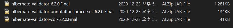 Hibernate Validator 는 현재 기준(2021-01-30) 7.0, 6.2, 6.0 버전을 제공하고 있다.