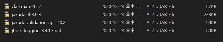 가장 최신 버전인 7.0 버전은 Jakarta EE 9 이란것을 사용하는데, 이는 Java EE 와는 다른것이고, Spring 5 는 아직 이 Jakarta EE 에 대한 지원을 하고 있지 않다. 따라서, Spring 5 에서 Hibernate Validator 를 사용하고자 한다면, 7.0 버전이 아니라, 6.2 버전을 사용해야한다.