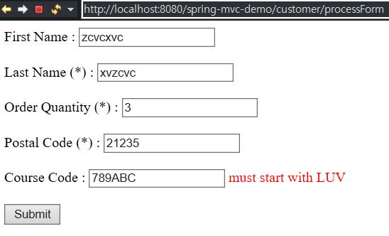 Last Name (*) : <form:input path="lastName" />