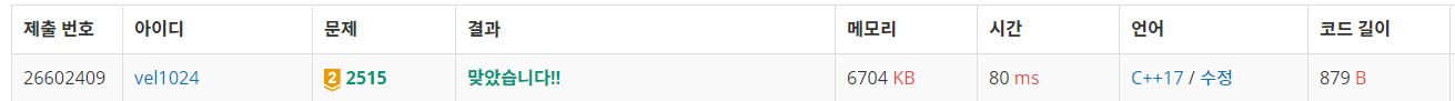 temp 배열을 초기화할때 주의할점은, 판매 가능한 그림이 되려면 보이는 부분의 세로 길이가 S 이상이어야 하므로, 이전 그림을 나타내는 arr[temp[i]].first 와 현재 i 번째 그림을 나타내는 arr[i].first 간의 차가 S 이상일 경우만 걸러내야한다.