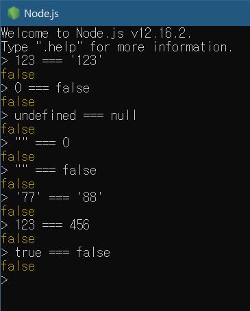 '77' === '88', 123 === 456, true === false 의 경우 Type 은 서로 같지만 value 가 다르기 때문에 false 로 취급되었다.